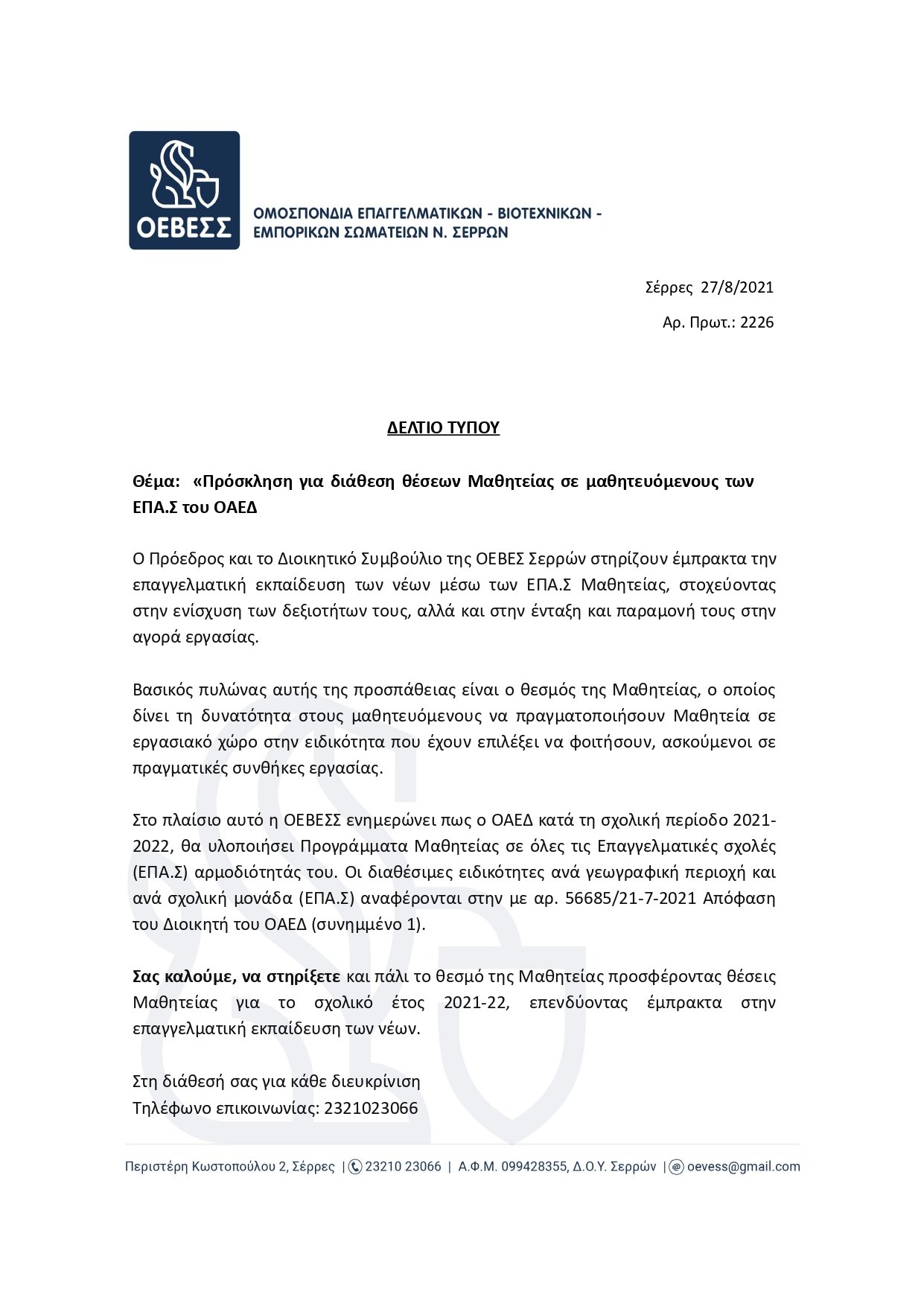 Διαβάστε το Δελτίο Τύπου: