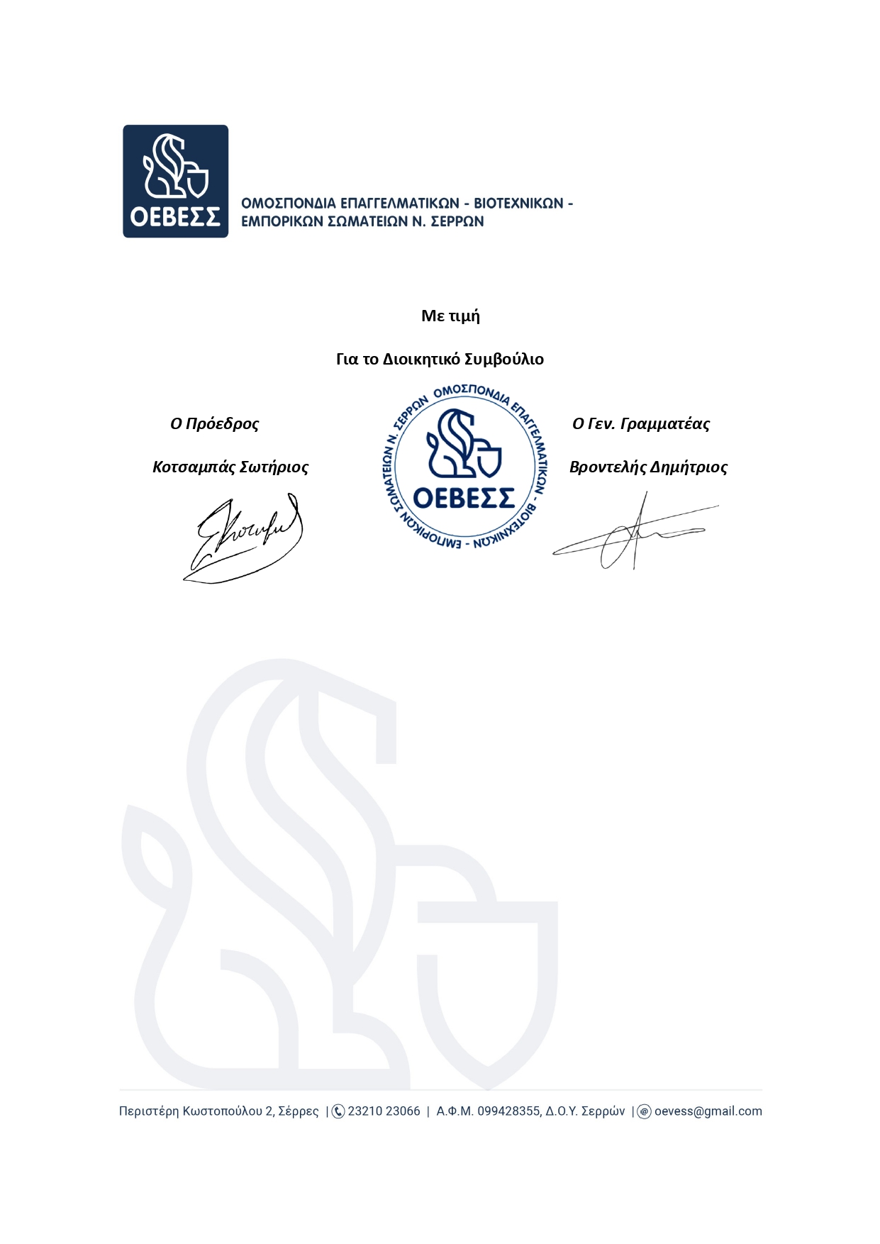 Πρόεδρο ΓΣΕΒΕΕ,