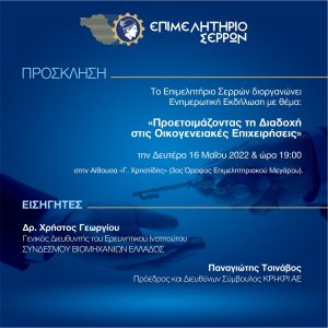 Το Επιμελητήριο Σερρών σάς προσκαλεί στην ενημερωτική εκδήλωση που διοργανώνει σε συνεργασία με τη Διεύθυνση Εταιριών της Γενικής Γραμματείας Εμπορίου του Υπουργείου Ανάπτυξης με θέμα: