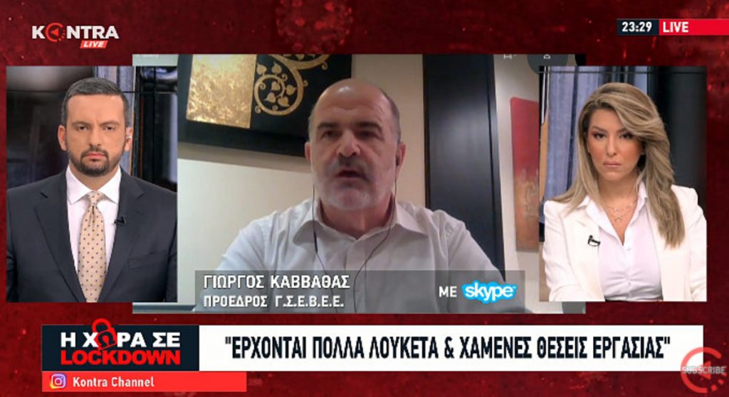 Έρχονται πολλά λουκέτα και ακόμη περισσότερες θέσεις εργασίας τόνισε για άλλη μία φορά ο Πρόεδρος της ΓΣΕΒΕΕ και Πρόεδρος της Πανελλήνιας Ένωσης Εστιατόρων & Συναφών επαγγελμάτων Γιώργος Καββαθάς, μιλώντας στο Κοζάνη tv για τα νέα ανεπαρκή μέτρα στήριξης των επαγγελματιών από πλευράς της κυβέρνησης και τις δυσβάστακτες συνθήκες που επιβάλλει το 2ο lockdown στη χώρα, προβλέποντας μάλιστα ότι 1 στις 3 επιχειρήσεις δεν θα καταφέρουν να επιβιώσουν.